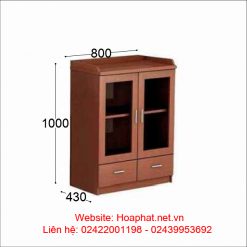 Phía dưới gồm hai bên cánh mở có khoang để tài liệu. Khoang giữa tủ, bên trên để tài liệu không cánh rộng sử dụng 2 đợt cố định, bên dưới có 2 ngăn kéo + 1 ngăn kéo file và có 2 khoang trống để tài liệu.