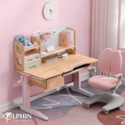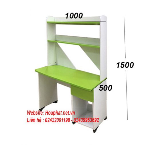 - Bàn học sinh học sinh liền giá sách gỗ công nghiệp phủ Melamine thiết kế trang nhã, tiện gọn, rất thích hợp với không gian nội thất gia đình, bàn thường được sử dụng đặt trong phòng học của trẻ em.