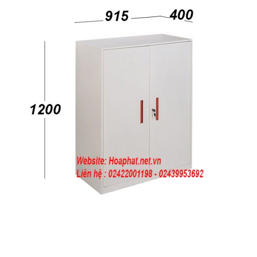- Tủ sắt thấp sơn tĩnh điện màu trắng S26, tay nắm âm màu cam