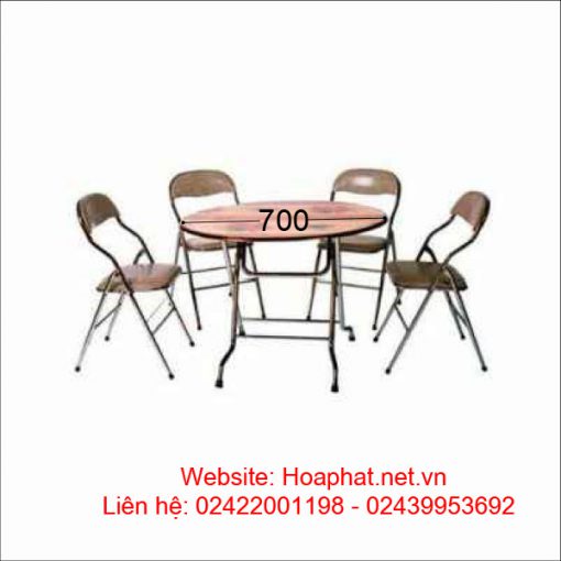 Bàn ăn gấp, chân bàn thẳng, ống thép Ø25.4. Mặt bàn Φ700 sử dụng chất liệu composite.
