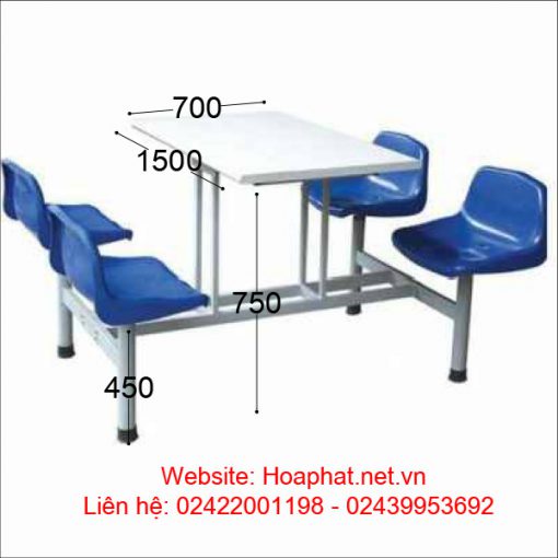 Sử dụng cho 4 người ngồi. Chất liệu mặt bàn sử dụng lamilate, kết hợp với khung sắt sơn tĩnh điện. Đệm nhựa bề mặt nhẵn, đa dạng mầu sắc.