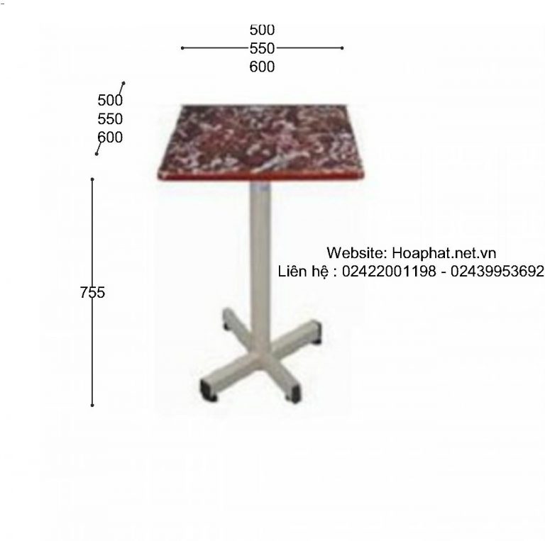 - Mặt V50 : Rộng 500 – sâu 500 – cao 755