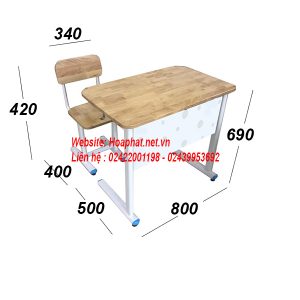 Bàn, ghế học sinh khung thép sơn trắng S26, mặt gỗ tự nhiên được phủ một lớp sơn trong suốt để bảo vệ bề mặt và giữ được màu sắc nguyên bản của gỗ