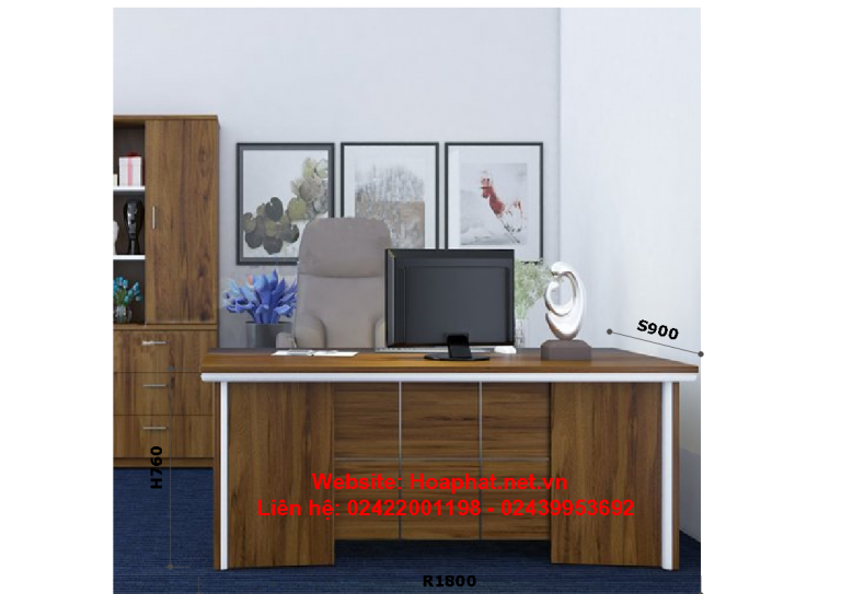 - Bàn lãnh đạo cao cấp NTP1890T3 sử dụng chất liệu gỗ phủ Laminate tạo cho sản phẩm sự sang trọng và đẳng cấp