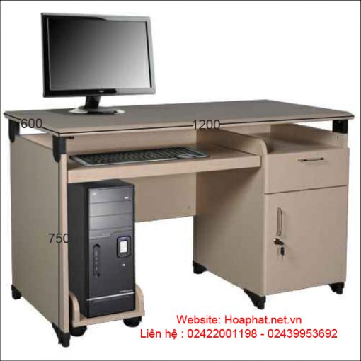 - Bàn máy tính cao cấp New Trend thiết kế có hộc liền 1 ngăn kéo, 1 cánh mở để đựng hồ sơ. Có khay bàn phím, kệ CPU.