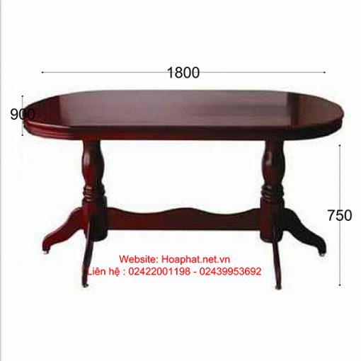 Bàn ăn hình Oval, cạnh biên dạng lượn cong giật cấp, hai chân trụ tiện cong. Mặt bàn gỗ tự nhiên.