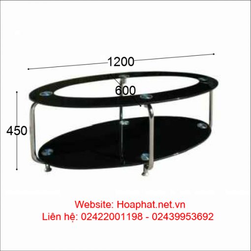 Bàn sofa hình Elip, chân ống thép Ø25 mạ Cr-Ni. Mặt kính mặt sơn trang trí dày 10mm, có đợt để đồ.