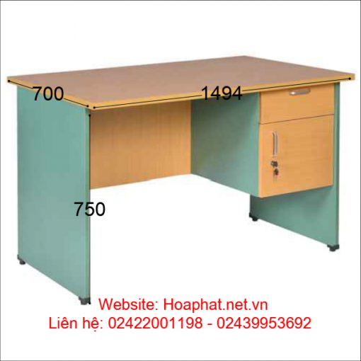Bàn vàng xanh SV150HL thiết kế có hộc liền lửng 1 ngăn kéo 1 cánh mở để file tài liệu. Bàn thường được sử dụng cho văn phòng làm việc.