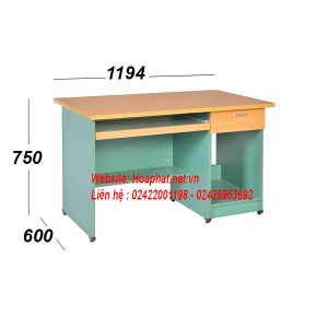 Bàn vàng xanh SV202S thường dùng ghép với các bàn làm việc vàng xanh khác. Bàn sử dụng để máy tính bàn có 1 ngăn kéo, có khoang để CPU và có bàn phím. Bàn làm bằng gỗ laminate với các màu vàng-xanh, ghi-xanh, ghi-chì.
