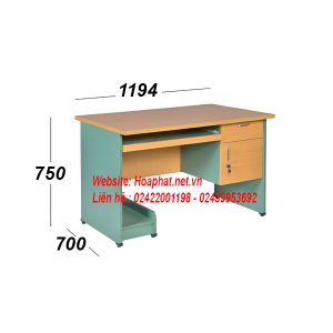 Bàn làm bằng gỗ laminate các màu vàng-xanh, ghi-xanh, ghi-chì. Sản phẩm có thể kết hợp sử dụng với các loại ghế nhân viên, ghế xoay.