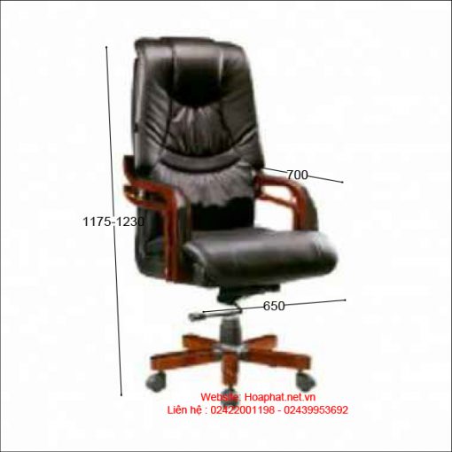 Ghế lãnh đạo bọc da thật tại phần tiếp xúc trực tiếp với người sử dụng. Tay ghế gỗ, chân ghế khung thép ốp gỗ tự nhiên. Ghế có chức năng điều chỉnh độ cao và độ ngả của ghế mang lại cảm giác thoải mái khi ngồi.