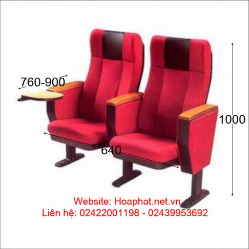 - Ghế hội trường TC03 đệm tựa mút bọc nỉ, bàn viết gỗ, chân khung thép sơn, tay nhựa.