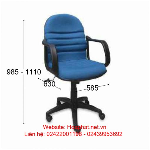Ghế xoay, cần hơi điều chỉnh độ cao thấp, tựa may đường kẻ ngang. Đệm tựa mút bọc vải nỉ, chân nhựa có bánh xe di chuyển, tay nhựa.