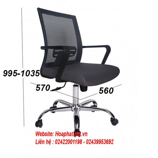 Ghế văn phòng có khung tựa nhựa, tựa bọc vải lưới, chân mạ , tay nhựa