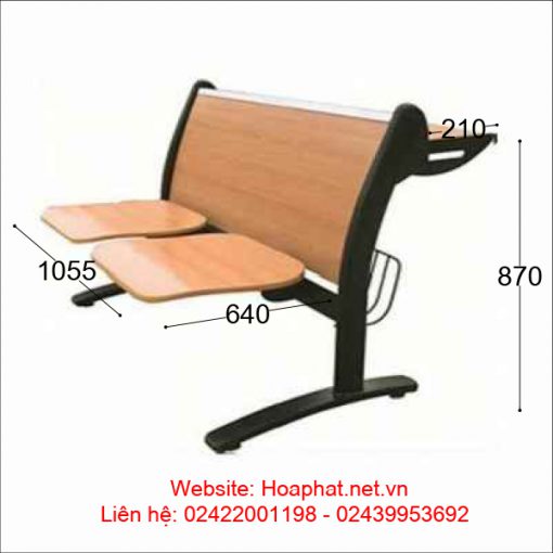 - Ghế phòng chờ GPC05E chân khung thép sơn,đệm tựa bằng gỗ, bàn viết gỗ