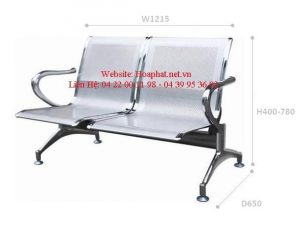 - Chân ghế bằng thép sáng bóng, có đệm chống trượt. Ghế dạng băng với 2 chỗ ngồi.