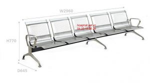 - Chân ghế bằng Inox sáng bóng, có đệm chống trượt. Ghế dạng băng với 5 chỗ ngồi