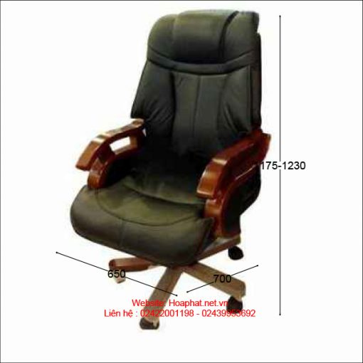 Ghế lãnh đạo bọc da thật tại phần tiếp xúc trực tiếp với người sử dụng. Tay ghế gỗ, chân ghế khung thép ốp gỗ tự nhiên. Ghế có chức năng điều chỉnh độ cao và độ ngả của ghế mang lại cảm giác thoải mái khi ngồi.