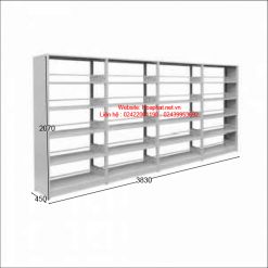 Giá sách sắt GS4 sử dụng 1 mặt, có 7 tầng (Kể cả đợt đáy). Có hồi kín, đợt di động, có thanh đỡ sách ở phía sau. Mỗi đợt chịu tải được 30kg.
