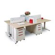 - Module bàn hình chữ nhật khung thép tam giác, phân chia bằng vách ngăn