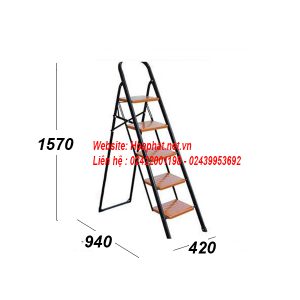 - Thang gấp T5B chất liệu khung thép sơn, mặt bậc tôn ốp nhựa