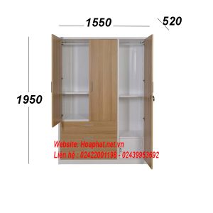 Tủ gia đình gồm ba cánh mở và hai ngăn kéo