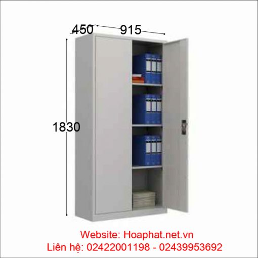 Tủ sắt sơn tĩnh điện màu ghi, có 1 khoang gồm 3 đợt di động, tủ có 2 cánh sắt mở, tay nắm nhựa liền khóa.