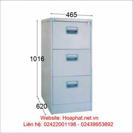 Tủ sắt sơn tĩnh điện màu ghi, có 1 khối gồm có 3 ngăn kéo đựng tài liệu, kẹp file, sử dụng khóa dàn, mỗi khoang kéo có 1 tay nắm nhựa. Mỗi ngăn kéo chịu tải được 15kg.