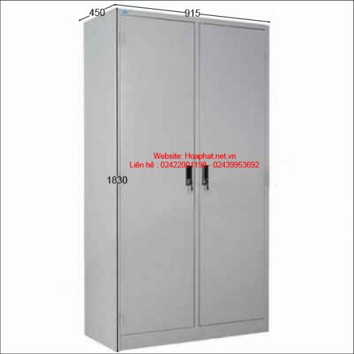 Tủ sắt sơn tĩnh điện màu ghi, có 1 khối gồm 2 khoang, mỗi khoang có 3 đợt di động. Tủ có 2 cánh sắt mở, 2 tay nắm nhựa liền khóa.