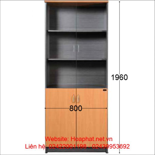 Tủ NewTrend NT1960G gồm 1 khoang, có 2 cánh gỗ dưới bên trong có 1 đợt và 2 cánh kính trên bên trong có 2 đợt di động. Nóc tủ gỗ Laminate dày 25mm, 1 cạnh bo mỏ vịt.