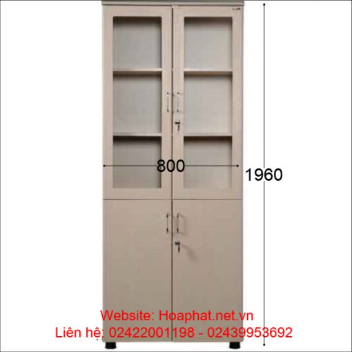 - Tủ tài liệu 2 buồng, phía trên là 2 khoang cánh kính để tài liệu, phía dưới là 2 khoang cánh mở