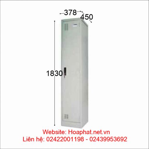Tủ sắt sơn tĩnh điện màu ghi, có 1 khối gồm 1 cánh sắt mở sử dụng khoá locker liền tay nắm, có 2 đợt cố định, 1 suốt treo áo.