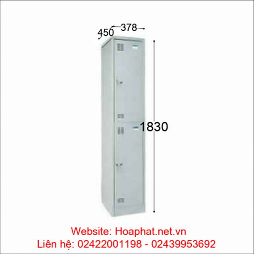 Tủ sắt sơn tĩnh điện màu ghi, có 1 khối gồm 2 khoang, 2 cánh sắt mở sử dụng khoá locker, mỗi khoang có 1 đợt cố định, 1 suốt treo áo.