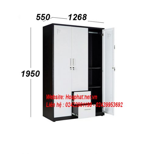 - Tủ sắt đựng quần áo cao cấp Hòa Phát sơn màu trắng kết hợp màu đen hiện đại