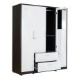 - Tủ gồm 3 cánh mở và 2 ngăn kéo, khoang phải có 2 đợt di động và 1 suốt treo quần áo