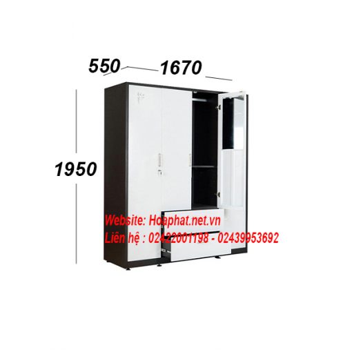 - Tủ sắt đựng quần áo cao cấp Hòa Phát sơn màu trắng kết hợp màu đen hiện đại