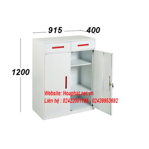 - Tủ hồ sơ sắt có 2 khoang, khoang trên có 2 ngăn kéo, khoang dưới có 2 cánh mở có 2 đợt di động, chia thành 3 tầng để tài liệu