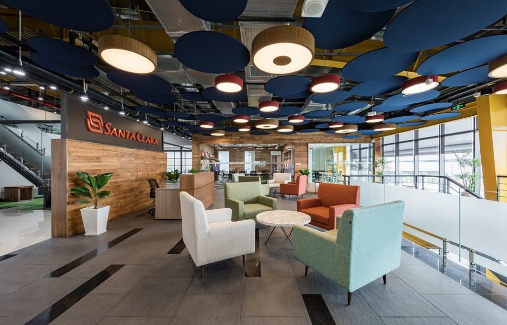 Không gian này cũng được thiết kế liền mạch với không gian breakout thư giãn tại trung tâm của văn phòng kết nối cùng không gian tầng lửng dùng làm thư viện, từ đây có thể bao quát toàn bộ không gian của văn phòng từ trên cao.